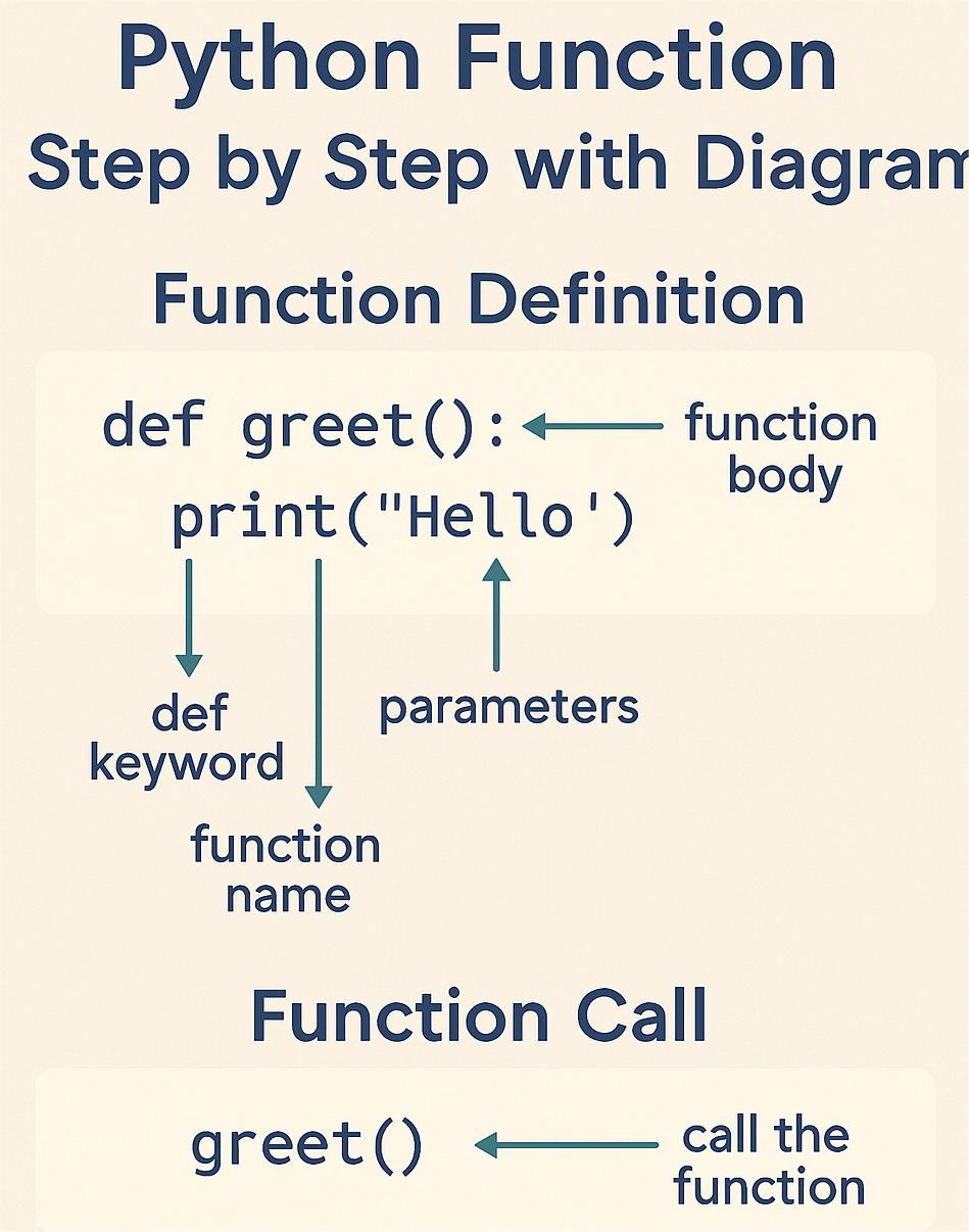 Python function are the building blocks of clean, efficient, and maintainable code. They allow you to encapsulate logic, reuse operations, and break complex problems into manageable pieces. From basic tasks like printing a message to advanced concepts like recursion and higher-order functions, mastering functions opens up a new level of control and flexibility in your coding journey.